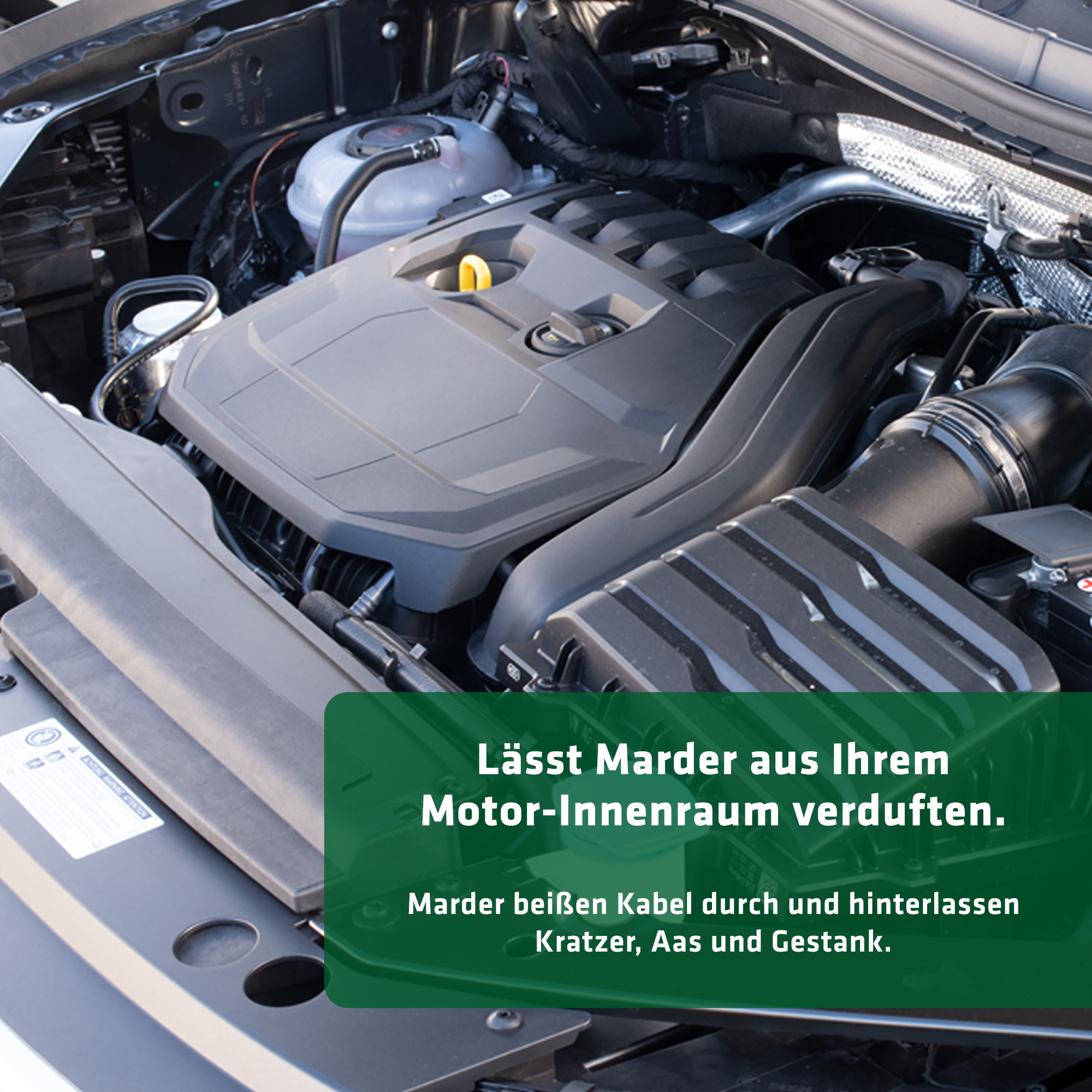 Für die Behandlung des Motorraums des Fahrzeugs wird eine gründliche Motorwäsche vor der Anwendung des Repellents empfohlen.