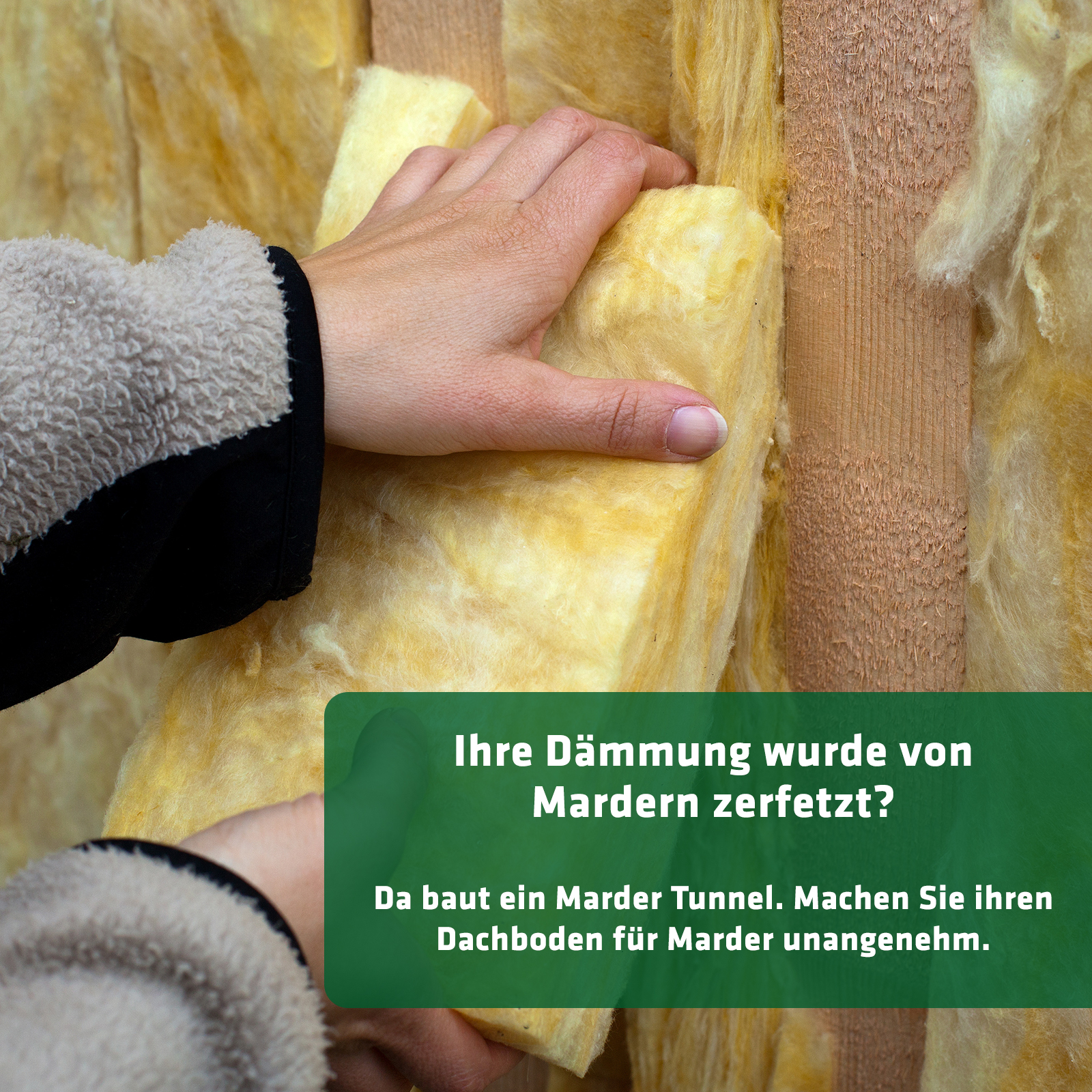 Für die Anwendung in Häusern und Gebäudestrukturen (Schuppen, Scheunen, Lagerräume usw.) suchen Sie nach Stellen, die häufig von Mardern aufgesucht werden. Reinigen Sie diese Bereiche und wiederholen Sie die Anwendung solange bis die Marder diese Orte meiden. In Speichern und auf Dachböden suchen Sie nach Nesteingängen und Laufwegen der Nager und behandeln diese wiederholt bis derartige Bereiche gemieden werden. Setzen Sie die Anwendung fort, um sicherzustellen, dass die Marder nicht zurückkehren.